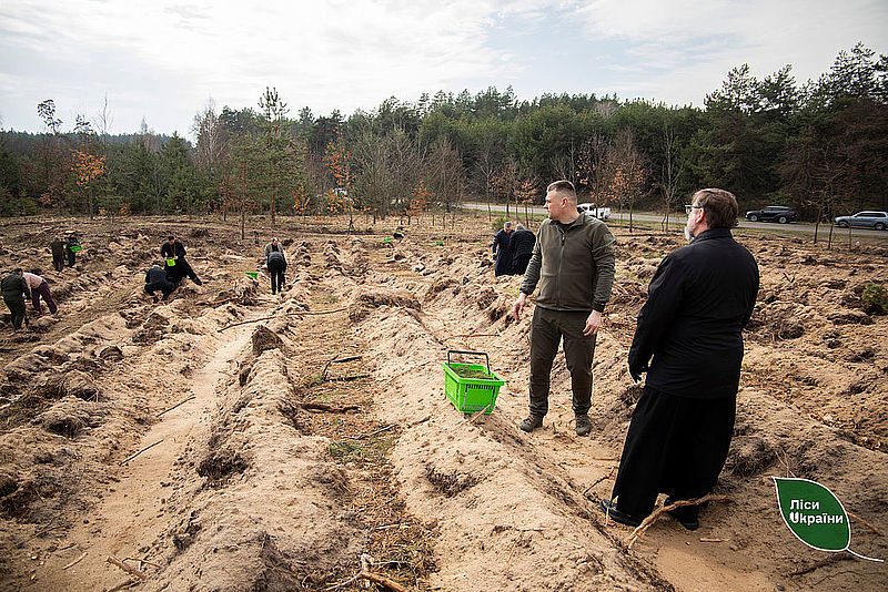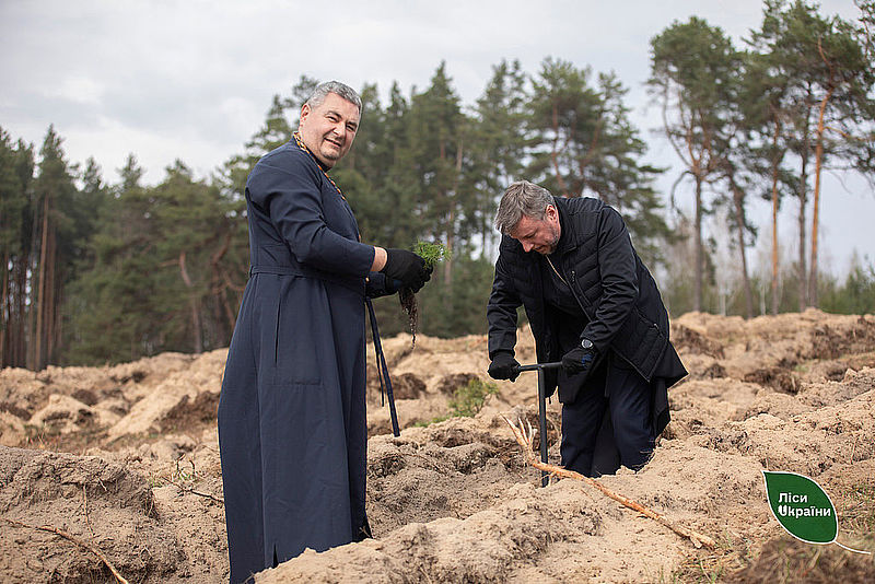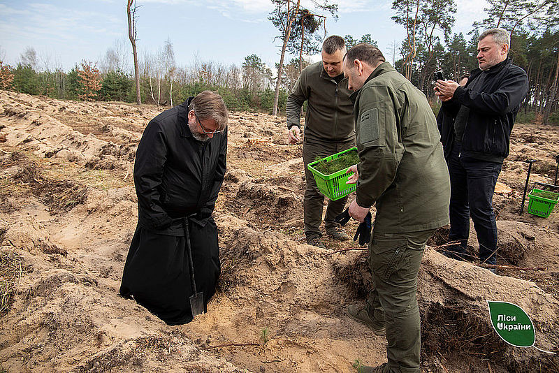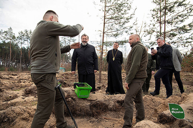 Спільно з Главою Української Греко-Католицької Церкви Блаженнішим Святославом лісівники Столичної філії ДП «Ліси України» висадили новий ліс в лісництві, частково ушкодженим дроновим ударом